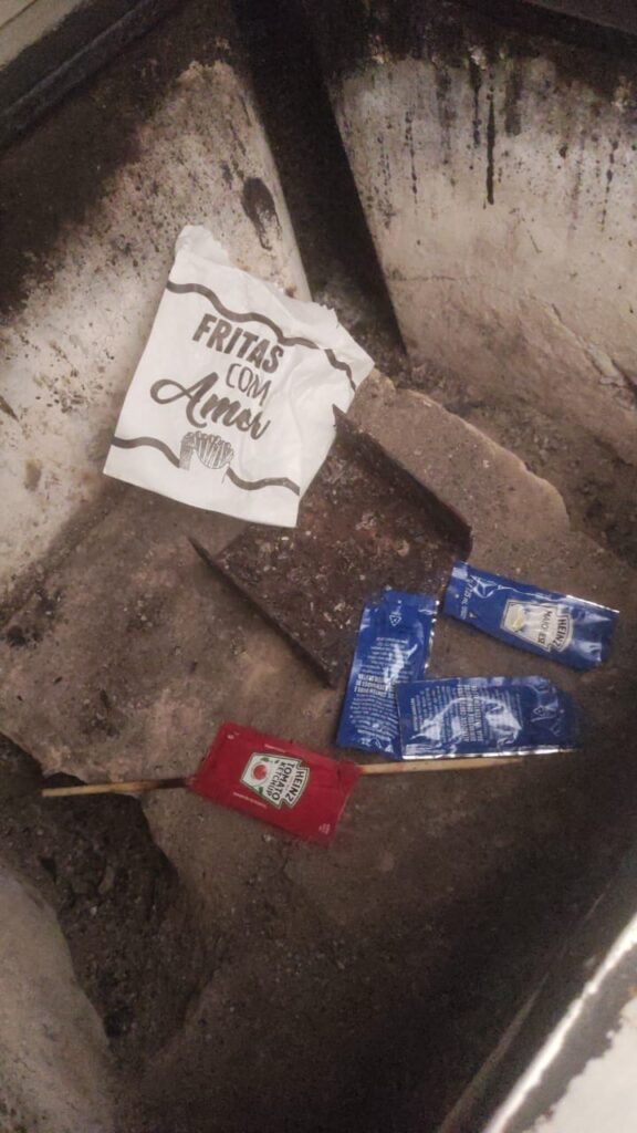 Restos de frutas, embalagens de doces, foram alguns exemplos de coisas encontradas num lugar onde deveria conter apenas COPOS.
